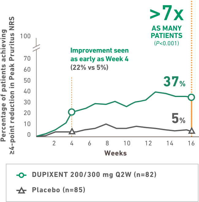 A reduction of at least 4 points in Peak Pruritus NRS from baseline is a clinically meaningful change.1