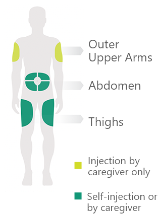 - Instruct patients and/or caregivers to administer the subcutaneous injection into the thigh or abdomen, except for the 2 inches (5 cm) around the navel